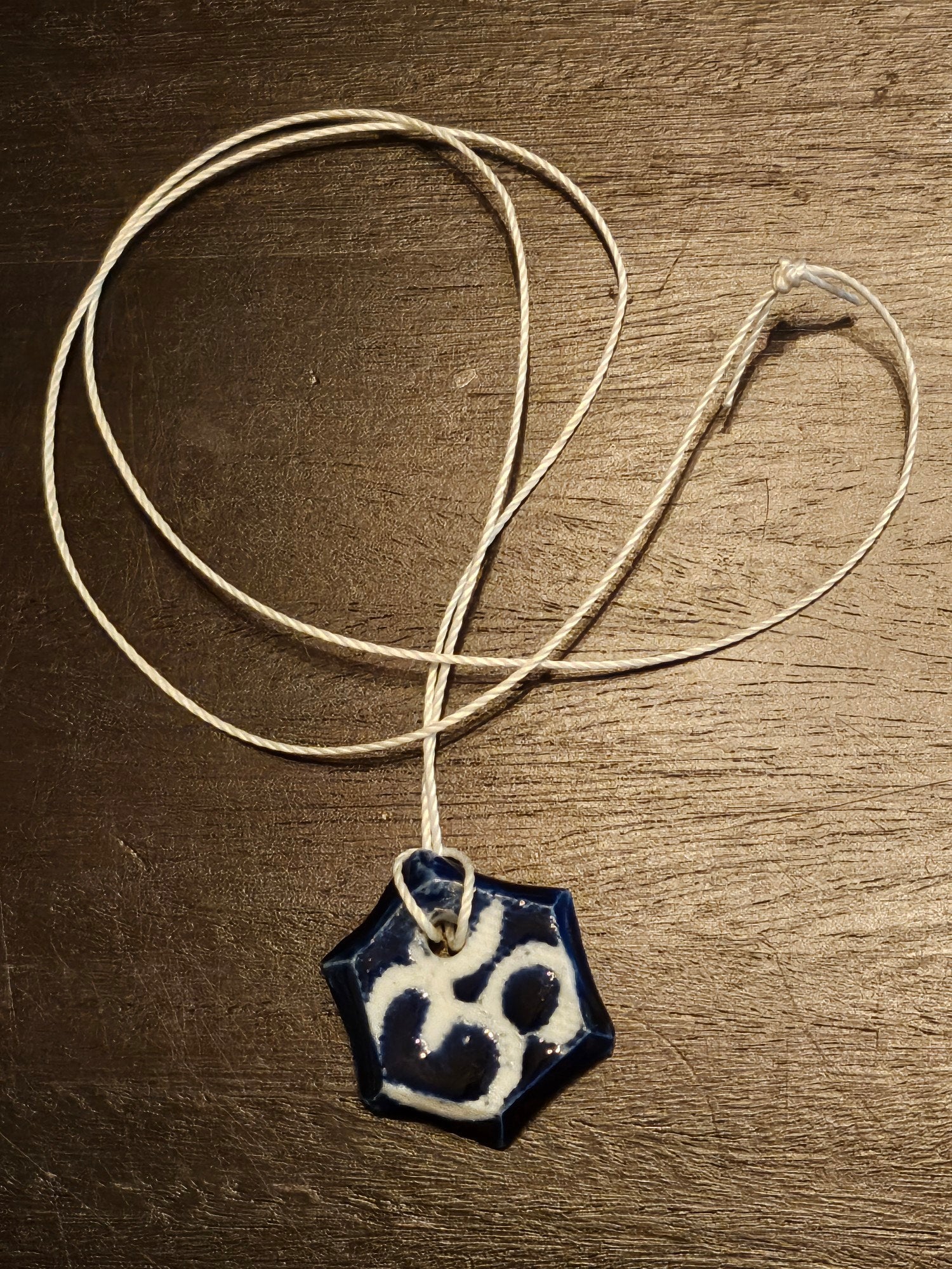 Genuine porcelain pendant glazed in a deep ocean blue.